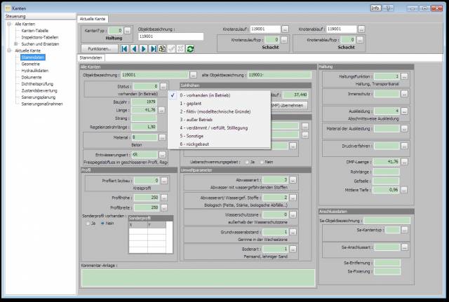 So gibt es z.B. für jede Referenztabelle nach Isybau bei dem entsprechenden Datenfeld einen Button mit einem Kontextmenü der möglichen Eingaben.